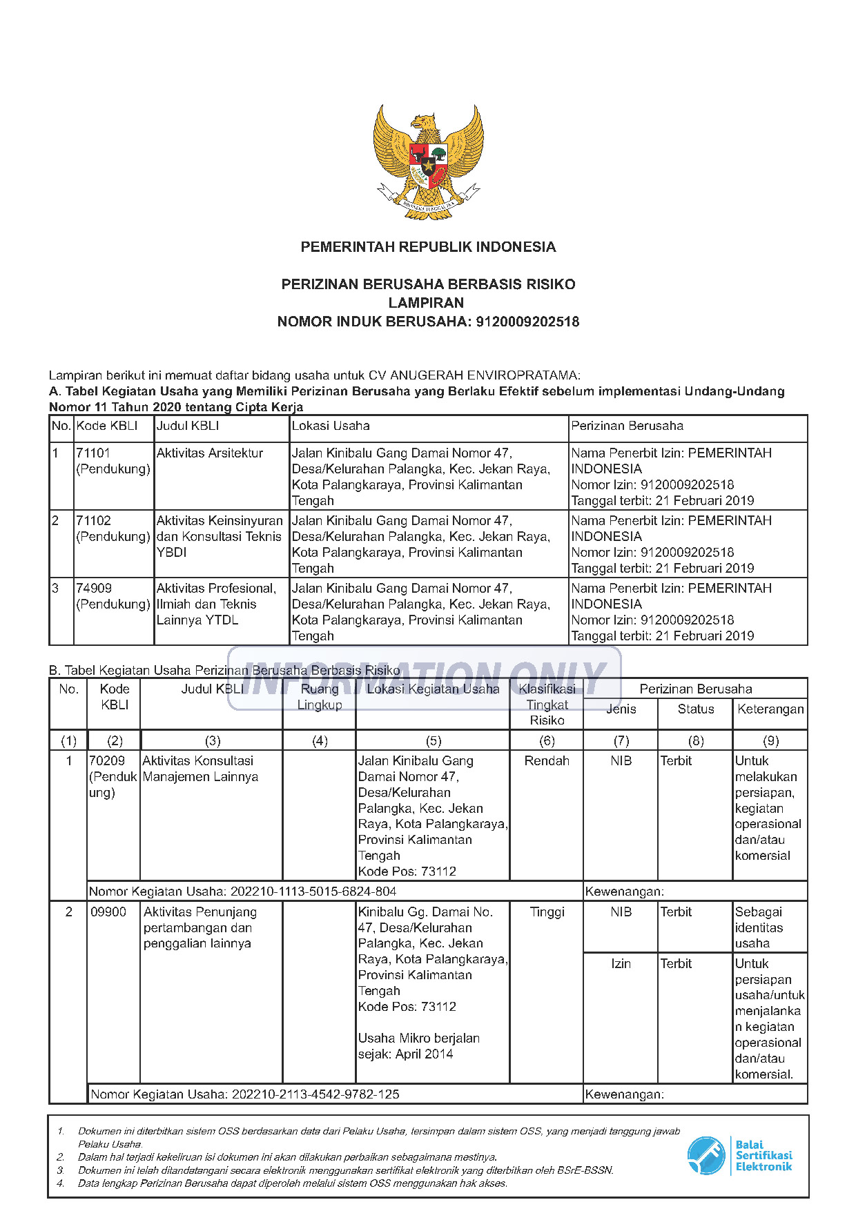 > Nomor Induk Berusaha (NIB) OSS